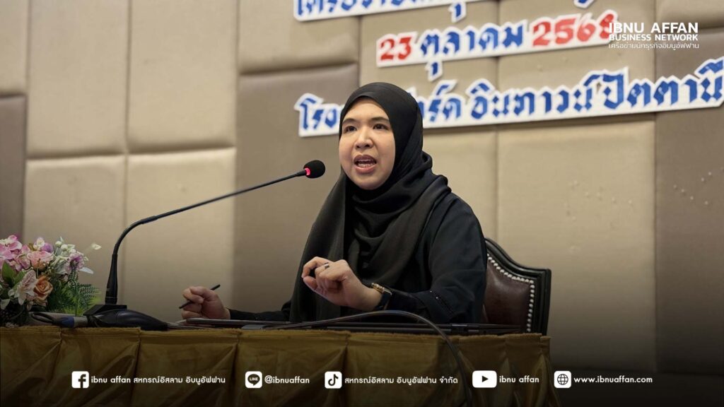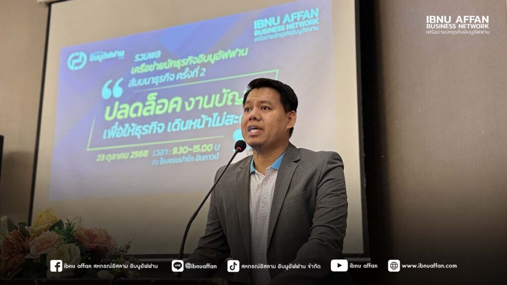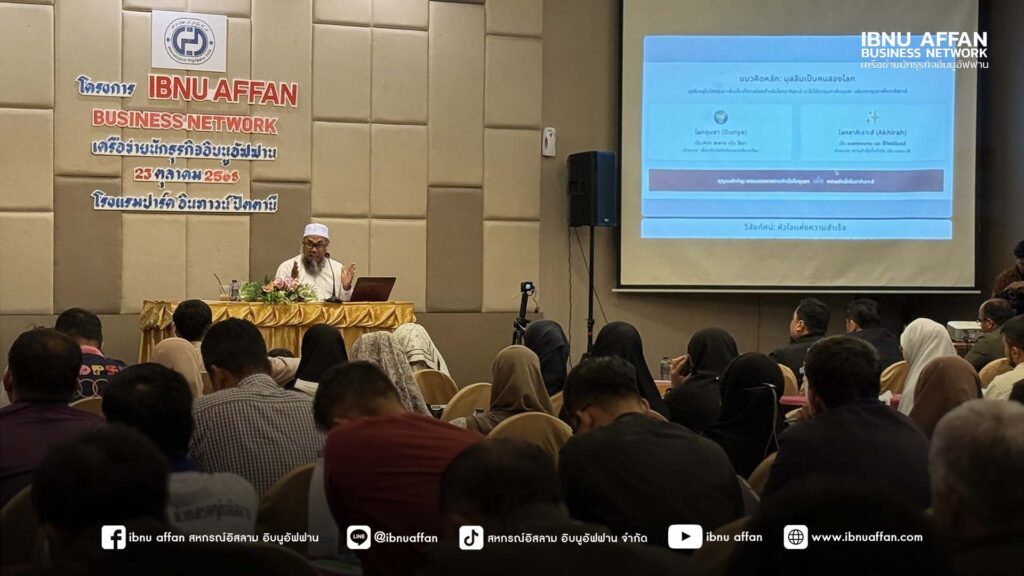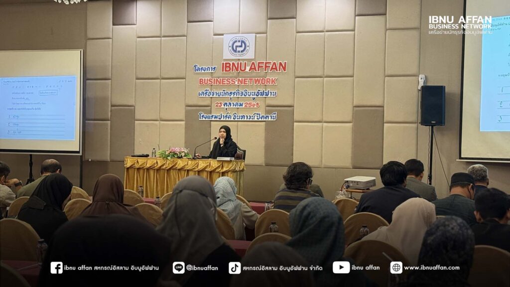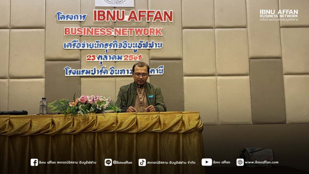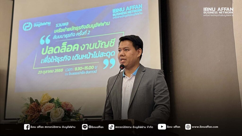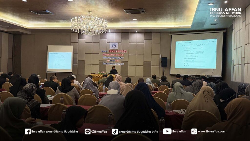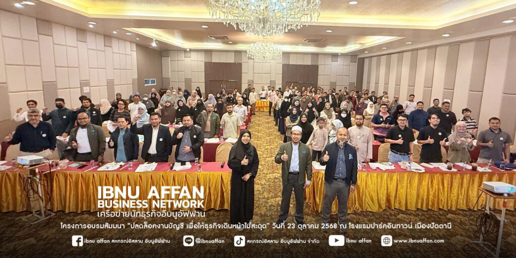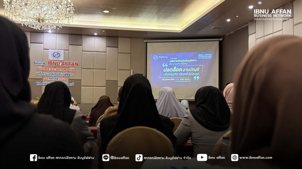 สหกรณ์อิสลาม อิบนูอัฟฟาน จำกัด เครือข่ายนักธุรกิจอิบนูอัฟฟาน (IBNU AFFAN BUSINESS NETWORK) ได้จัดกิจกรรมอบรมเชิงปฏิบัติการในหัวข้อ “ปลดล็อคงานบัญชี เพื่อให้ธุรกิจเดินหน้าไม่สะดุด” โดยมีผู้ประกอบการ สมาชิกสหกรณ์ และผู้สนใจด้านการเงินการบัญชีเข้าร่วมกว่า 150 ท่าน การอบรมได้รับเกียรติจาก ครูอัส (อัสมา แวโน๊ะ) นักบัญชีและที่ปรึกษาภาษีมืออาชีพ มาร่วมบรรยายให้ความรู้ในหัวข้อการวางระบบบัญชีธุรกิจ การบริหารต้นทุน และการวางแผนภาษีอย่างมีประสิทธิภาพ เพื่อเสริมรากฐานทางการเงินที่มั่นคงให้กับกิจการของสมาชิก พร้อมกันนี้ยังได้รับเกียรติจาก อาจารย์ซุฟอัม อุษมาน นักธุรกิจและนักบรรยายผู้มากประสบการณ์ มาร่วมพูดคุยพิเศษในหัวข้อ “เป็นนักธุรกิจที่ประสบความสำเร็จในโลกนี้และโลกหน้า” เพื่อสร้างแรงบันดาลใจให้ผู้เข้าร่วมเห็นคุณค่าของการประกอบธุรกิจตามหลักชะรีอะฮ์ ควบคู่กับความโปร่งใสและจริยธรรมทางการเงิน กิจกรรมในครั้งนี้เป็นส่วนหนึ่งของความมุ่งมั่นของ สหกรณ์อิสลาม อิบนูอัฟฟาน ในการพัฒนาเครือข่ายธุรกิจมุสลิมให้มีความรู้ ความเข้าใจ และความพร้อมในการบริหารกิจการอย่างมืออาชีพ ภายใต้กรอบของหลักศาสนาอิสลาม