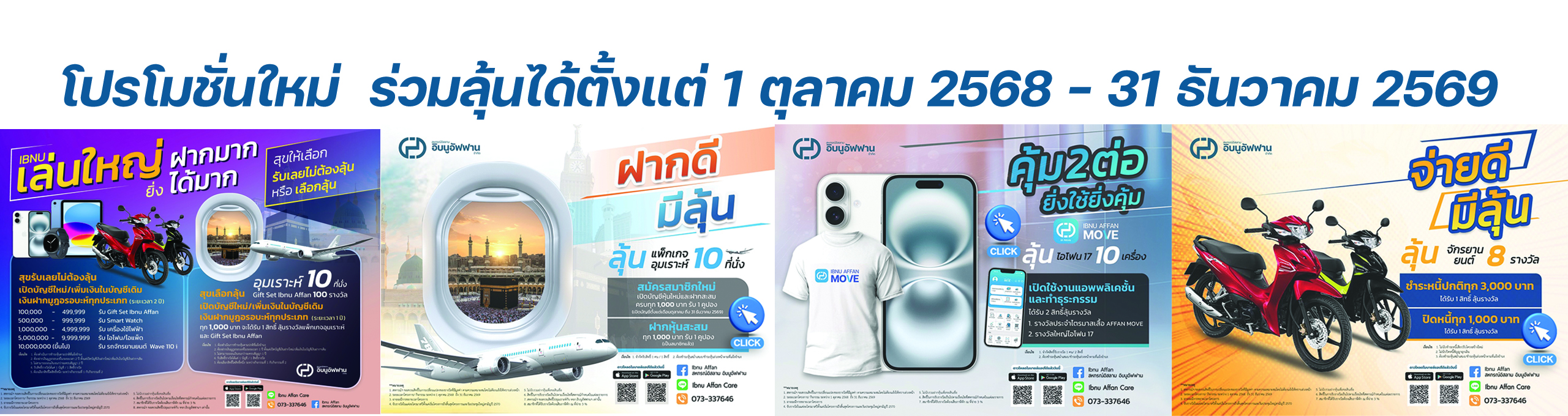 เมื่อวันที่ 21 กันยายน 2568 สหกรณ์อิสลาม อิบนูอัฟฟาน จำกัด สาขาสุไหงโก-ลก ได้มีกำหนดพิธีเปิดอาคารสำนักงานใหม่...